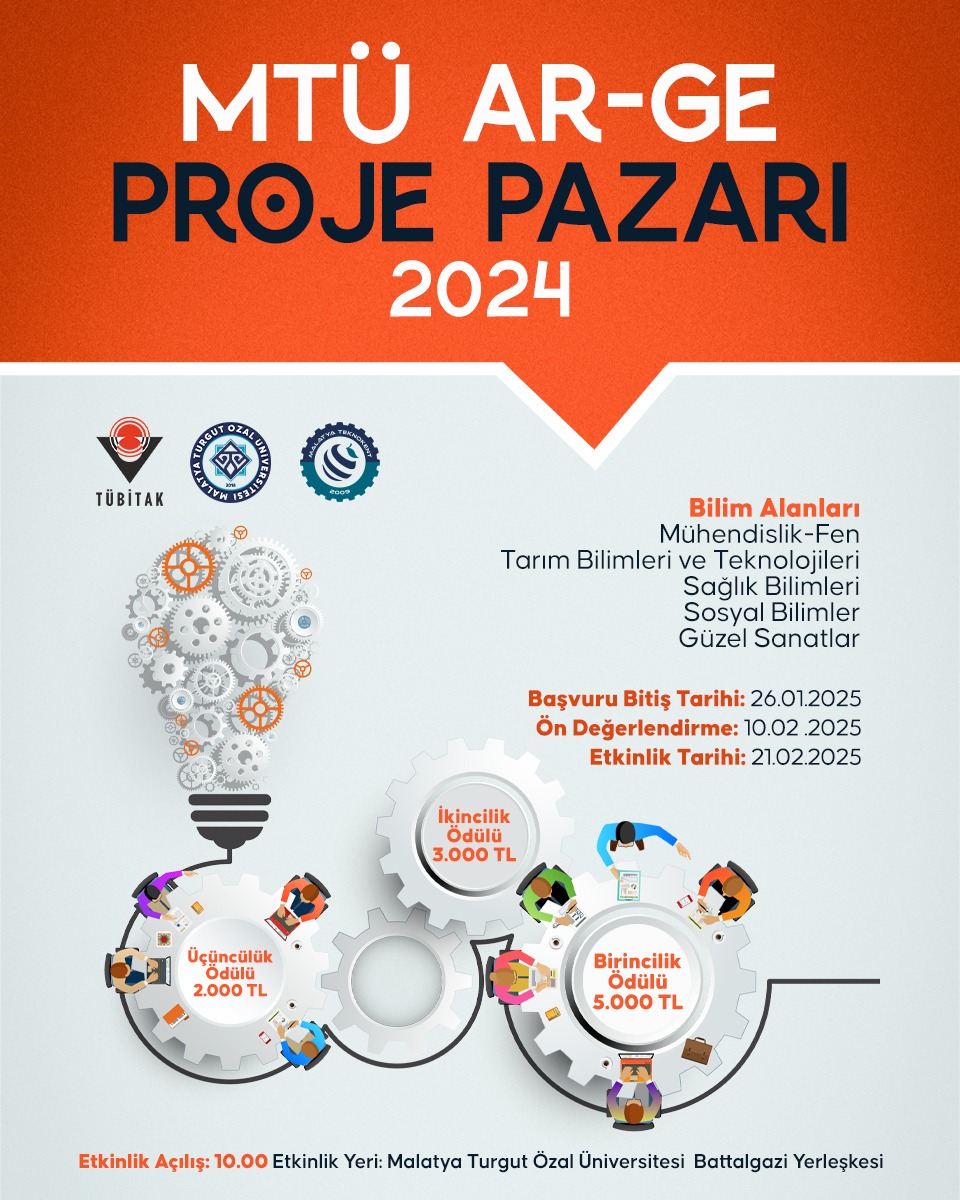 Malatya Turgut Özal University is organizing the MTÜ R&D Project Marketplace 2024 to promote innovative ideas in various disciplines, including Engineering-Sciences, Agricultural Sciences and Technologies, Health Sciences, Social Sciences, and Fine Arts.