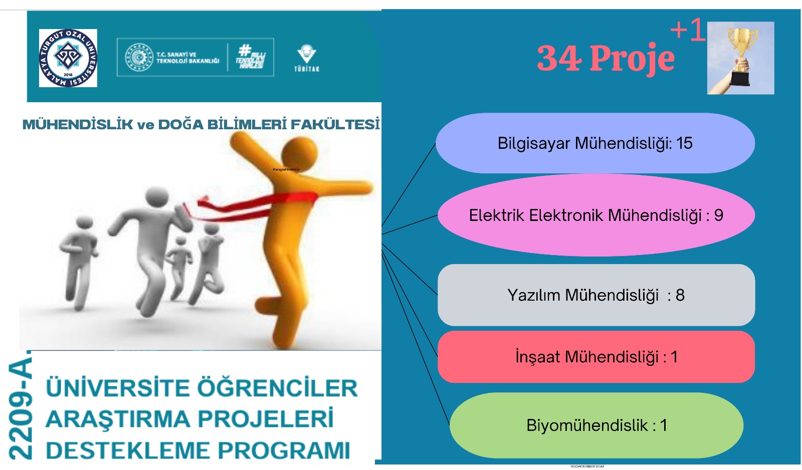 TÜBİTAK 2209-A -Üniversite Öğrencileri Araştırma Projeleri Destekleme Programında kabul gören 34 (+1) proje ile birinciyiz🏆🏆🏆 Öğrencilerimizi ve danışman hocalarımızı tebrik ederiz👏👏👏