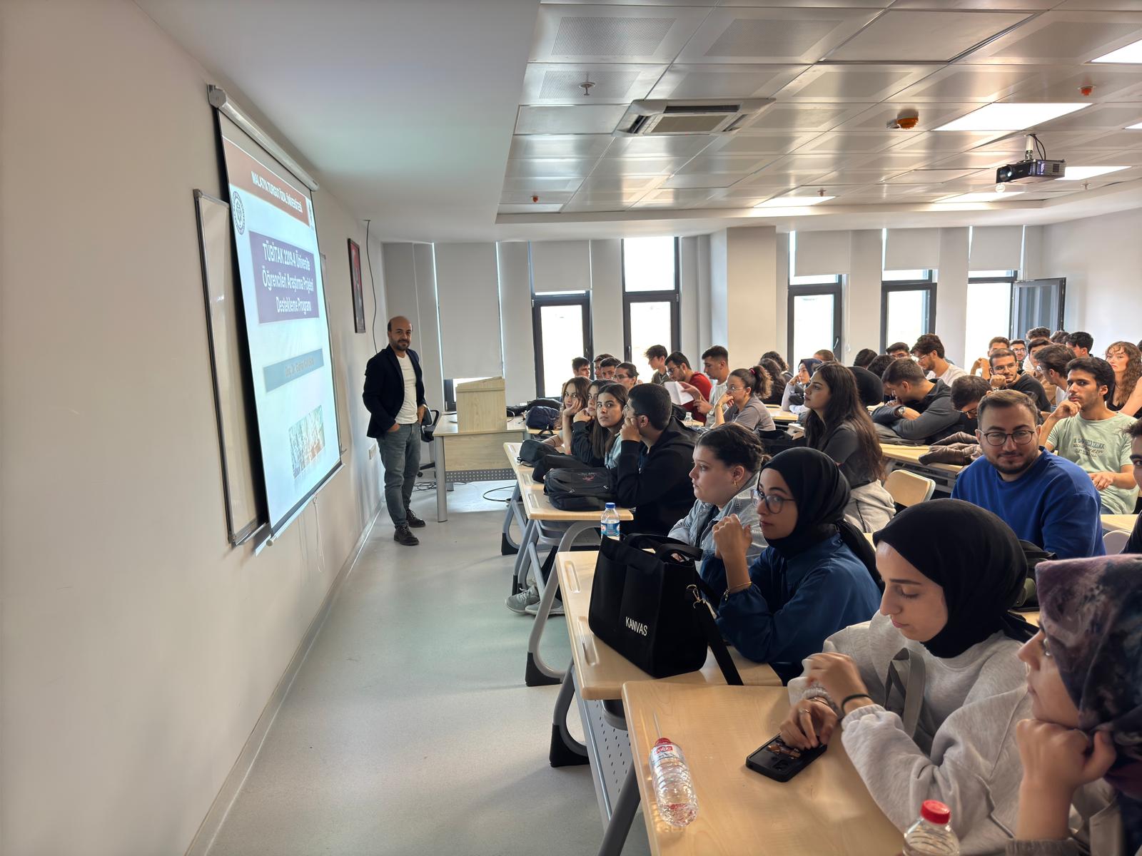 Doç. Dr. Gürkan Kavuran, proje çalışmalarının bilimsel araştırmalardaki yerini ve önemini öğrencilerle paylaşarak, etkinliği soru-cevap bölümüyle sonlandırdı.