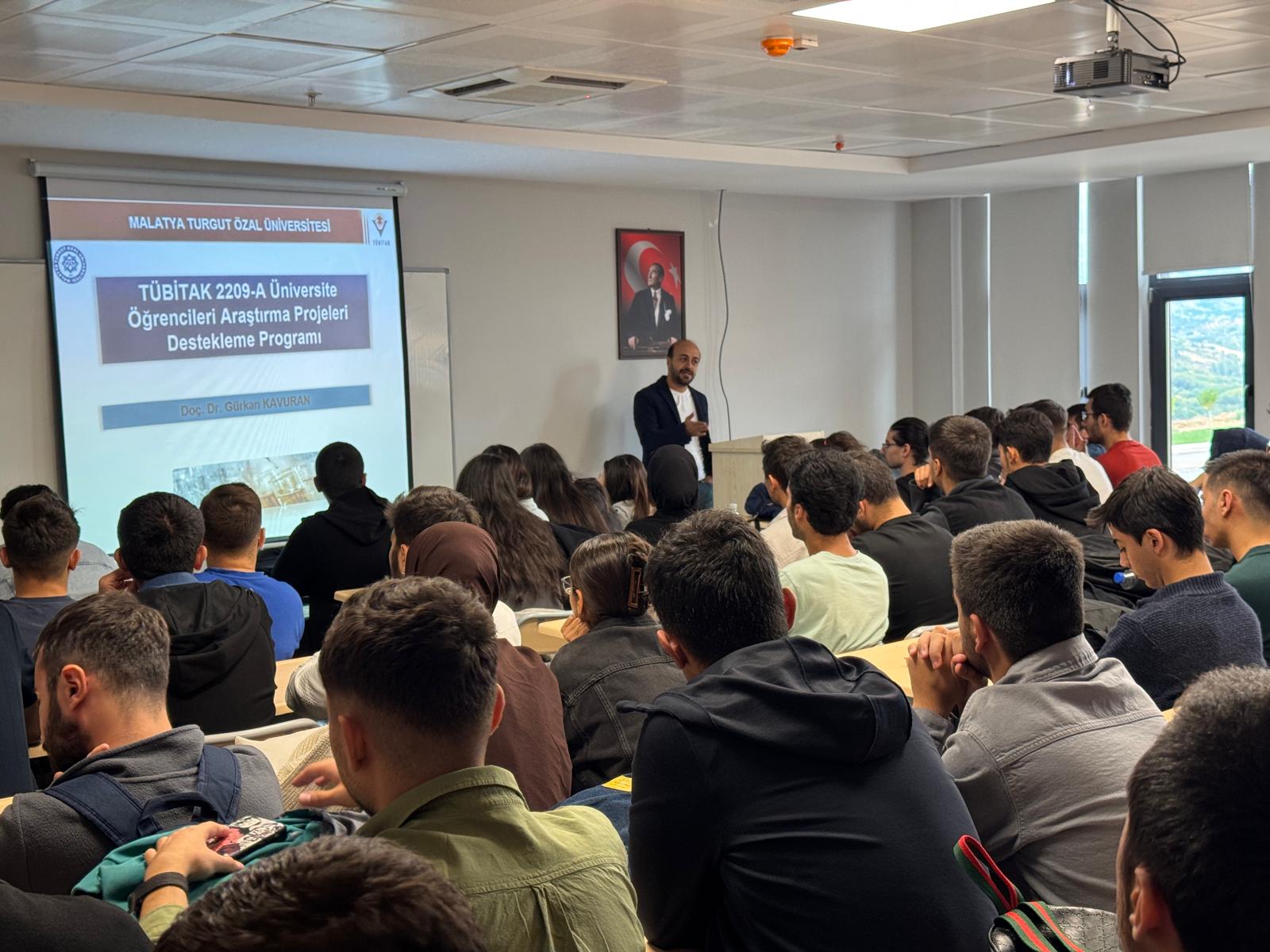 Üniversitemiz tarafından düzenlenen TÜBİTAK 2209-A Üniversite Öğrencileri Araştırma Projeleri Destekleme Programı kapsamında, Proje Yazma ve Bilgilendirme Günleri etkinliği gerçekleştirildi. Etkinlikte, Doç. Dr. Gürkan Kavuran, öğrencilere araştırma projelerinin yazım süreçleri hakkında değerli bilgiler sundu.
